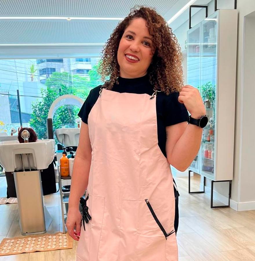 Sou profissional Cabeleireira há mais de 15 anos e Terapeuta capilar com formação Básica e Avançada pela Academia Brasileira de Tricologia – ABT. Minha expertise é em Colorimetria, mechas e alisamento ético. Sou muito feliz por fazer exatamente o que Amooo.