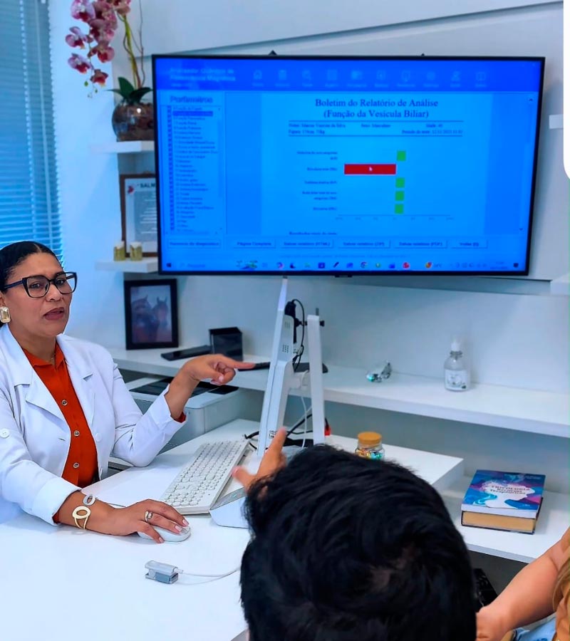 Muitas vezes, a causa de uma queda persistente ou de uma dermatite que não sara está escondida em uma intolerância alimentar, em um fígado sobrecarregado ou na falta de absorção de nutrientes. Ao unir a Bioressonância à sua avaliação capilar, conseguimos montar um plano de tratamento que não apenas “tapa o buraco”, mas corrige a origem sistêmica do problema.